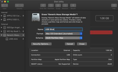 在繼續之前,請確保您已將 USB 閃存驅動器上的所有數據複製到安全位置,例如 Mac 的內部磁盤。