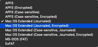- 現在單擊格式下拉菜單並選擇Mac OS 擴展(日誌式、加密)。