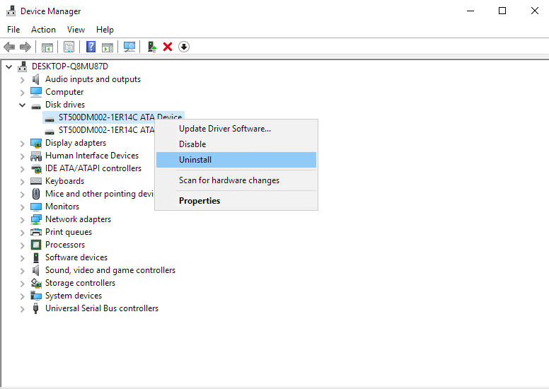 步驟2。退出設備管理器並重新啟動計算機。然後再次打開設備管理器。右鍵單擊硬盤並選擇更新驅動程序。