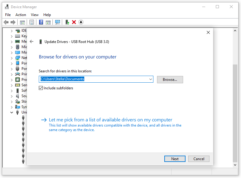 步驟 4。選擇 ”讓我從計算機上的可用驅動程序列表中進行選擇”並點擊下一個。