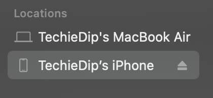 - 打開Finder並等待它檢測iPhone(在“位置”下)。