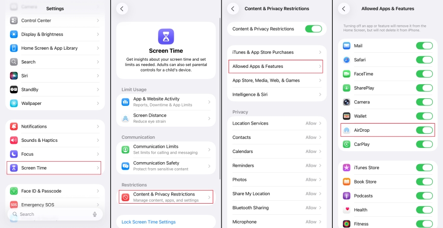 步驟2。允許允許的應用程序和功能中的 AirDrop;否則,您將在控制中心看到不可用的 AirDrop 選項。