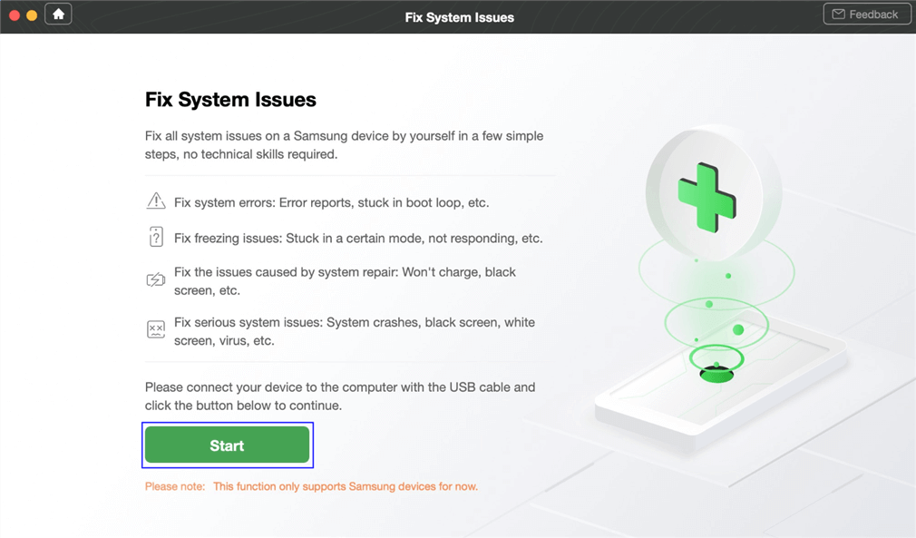 步驟2。將您的 Android 手機連接到計算機,然後單擊開始繼續。