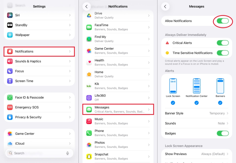 5) 設備設置不正確:當您沒有看到“購買請求”通知時,您需要檢查您的設備上是否啟用了“消息”通知。