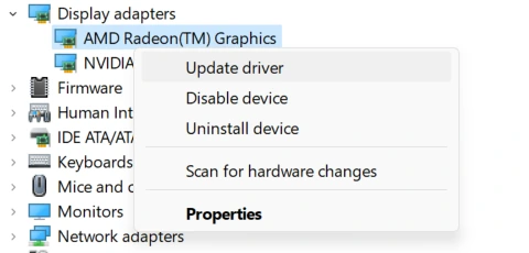 2. 展開顯示適配器部分並右鍵單擊您的顯卡。