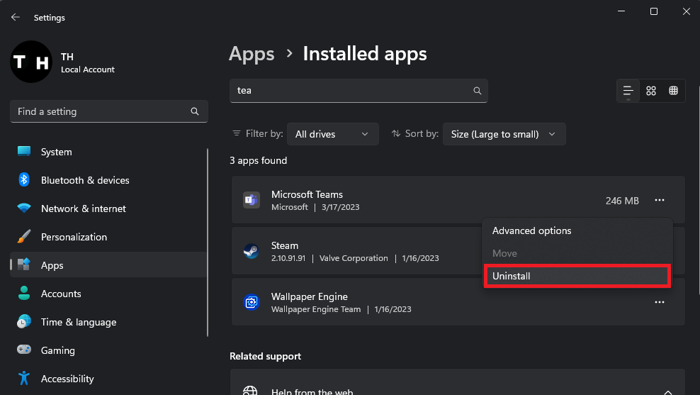 要重新安裝該應用程序,請首先從 Windows 設置中的“已安裝的應用程序”部分將其卸載。然後,從 Microsoft Store 重新下載該應用程序。