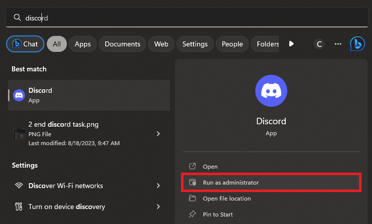 右鍵單擊 Discord 快捷方式或可執行文件,然後選擇“以管理員身份運行”。這提供了提升的權限,並且可以繞過任何與權限相關的障礙。