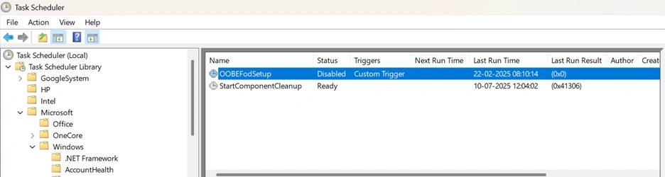 - 在左側面板中,單擊任務計劃程序庫 → Microsoft → Windows → 服務