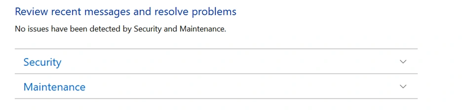 - 接下來,單擊“安全和維護”以查看更多選項。