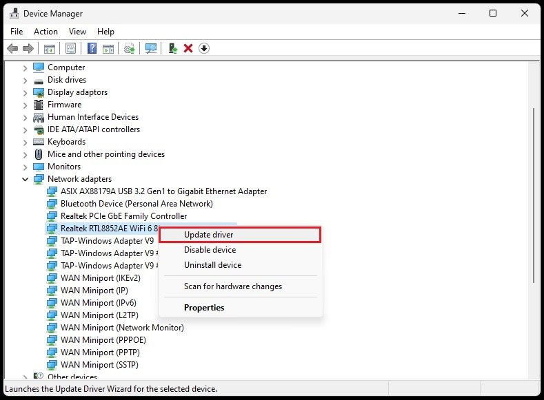 如果沒有任何幫助,請確保更新您的網絡驅動程序。打開你的裝置經理應用。在此窗口中,展開您的網絡適配器,右鍵單擊您正在使用的並選擇更新驅動程序。在此窗口中,選擇自動搜索驅動程序。如果不確定您使用的是哪個網絡適配器,請對此設備列表中的每個設備重複此步驟。