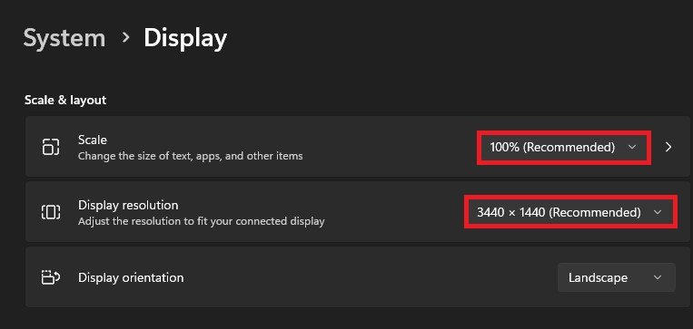 在這裡,確保選擇您的主顯示器並向下滾動以設置規模和顯示分辨率選項到其推薦值。根據您的瀏覽器擴展程序和 Windows 版本,如果您使用異常的比例和分辨率,Chrome 可能會出現正確啟動問題。這也可能適用於連接到您的 PC 的任何輔助顯示器。