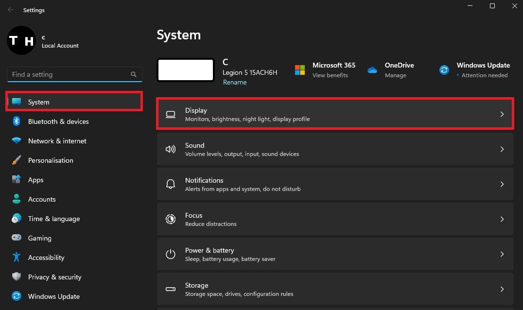 完成後,打開 Windows 設置。在下面系統,點擊展示。