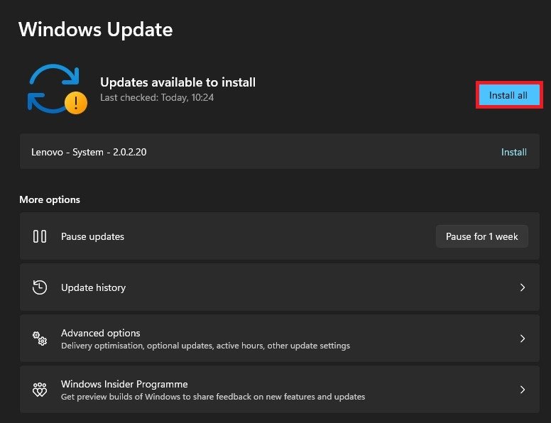如果您認為此問題與任何已安裝的瀏覽器擴展無關,請返回 Windows 設置。下載最新更新Windows更新選項卡,然後重新啟動電腦。這可以解決由操作系統引起的常見問題。