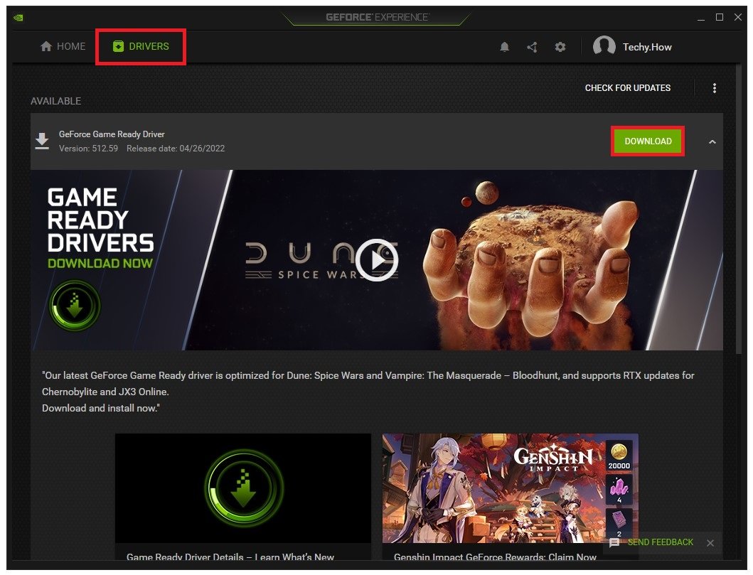 GeForce Experience > 驅動程序 > 下載