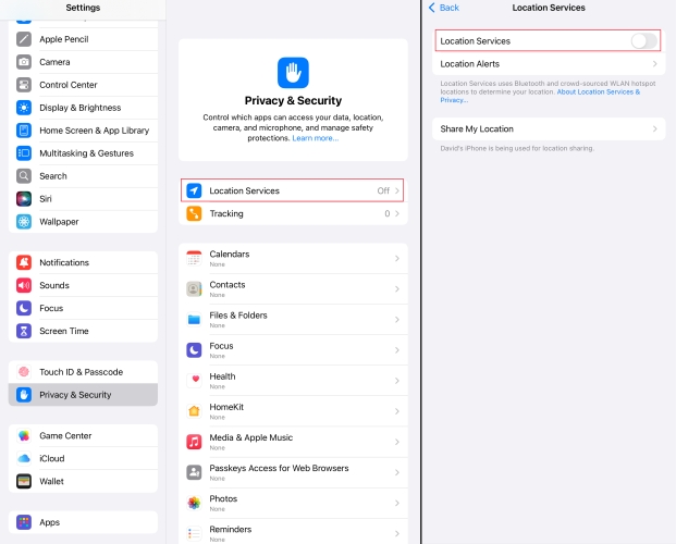 步驟1。前往iPad設置 > 隱私和安全 > 位置服務。