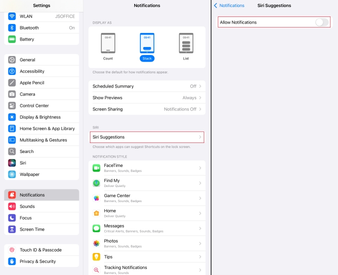 步驟 3.允許某些應用程序的通知或關閉所有應用程序的通知。