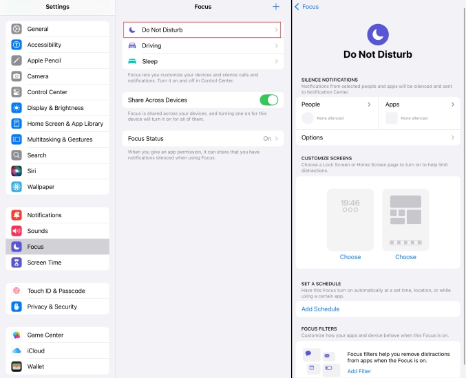 步驟1。前往設置 > 焦點 > 請勿打擾。