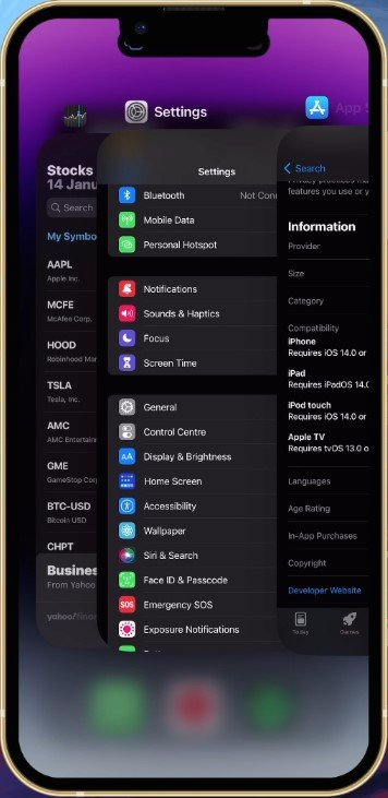 另一件需要檢查的事情是您是否有任何後台應用程序正在運行。雙擊主頁按鈕即可調出最近使用的應用程序,或者在較新的設備上緩慢向上滑動。向上滑動您當前不使用的任何應用程序以將其關閉。