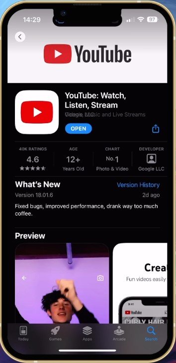 接下來,檢查崩潰的應用程序是否是最新的。轉到 App Store,查找該應用程序,然後檢查您遇到問題的應用程序是否已過時。如果是,請選擇更新並讓它下載並安裝最新版本。