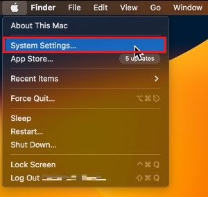 單擊菜單欄中的 Apple 圖標並選擇系統設置。有時,您的設置可能看起來有點不同,具體取決於您使用的 Mac 操作系統版本。
