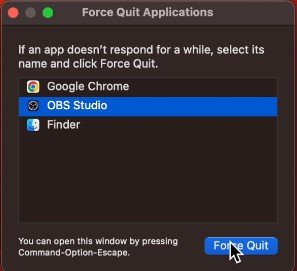 單擊菜單欄中的 Apple 圖標並選擇強制退出。將打開一個小窗口,顯示 Mac 上運行的應用程序列表。繼續退出當前不使用的應用程序以釋放一些資源。確保您的 Mac 已插入電源並且禁用低功耗模式,否則也可能導致延遲。
