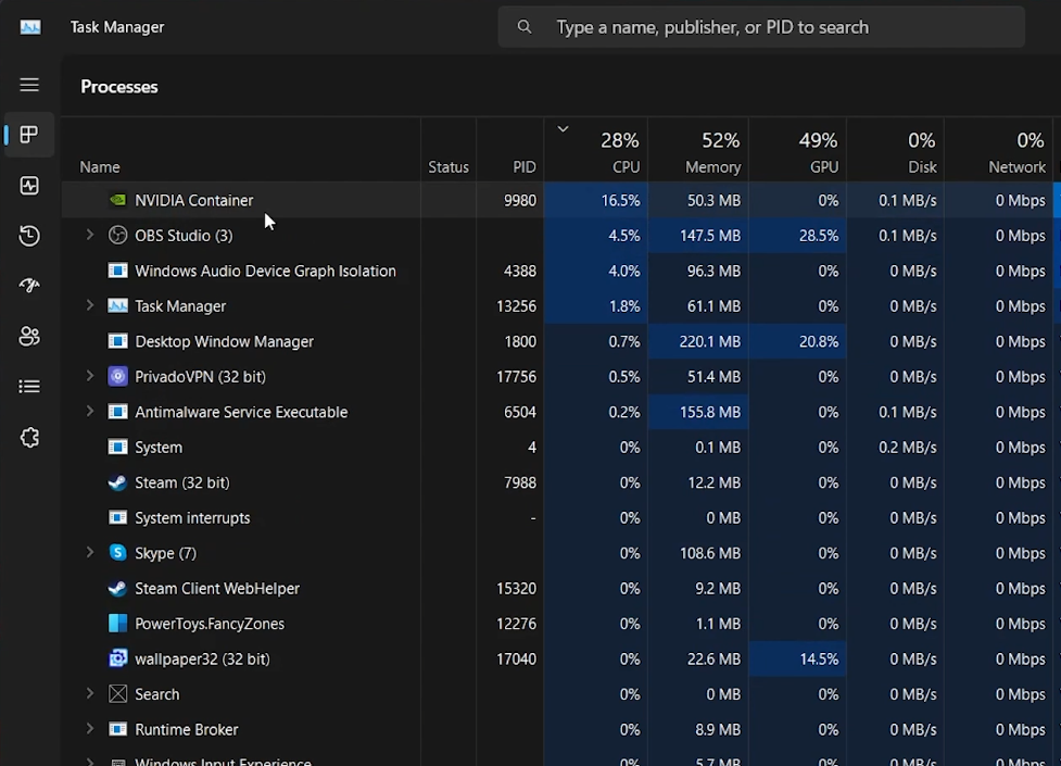 打開任務管理器並關閉消耗大量 CPU 或內存但在遊戲過程中不需要的應用程序。這可以釋放資源並使遊戲運行更流暢。