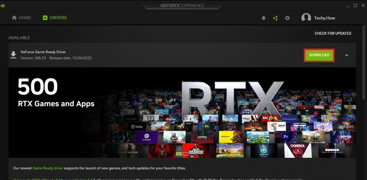 安裝更新:單擊“下載”,然後按照屏幕上的說明更新驅動程序,增強遊戲視覺效果和穩定性。