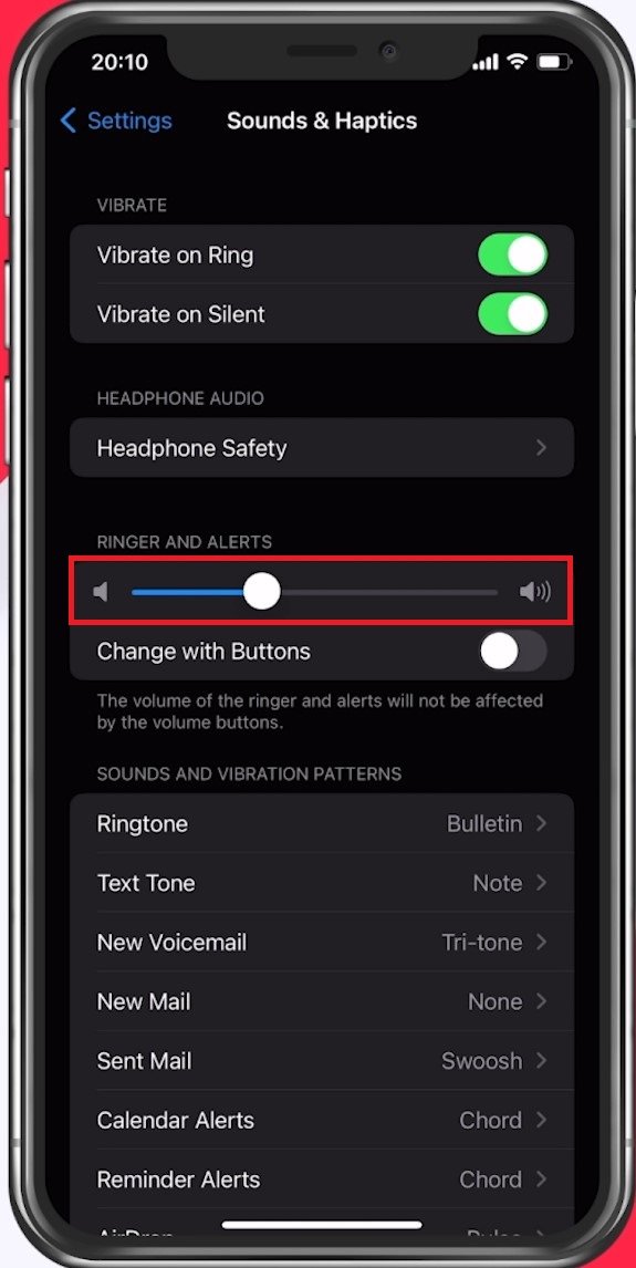 回到你的聲音和触覺設置,您可以更改您的鈴聲和警報體積。請務必嘗試使用此選項,直到找到最佳音量。