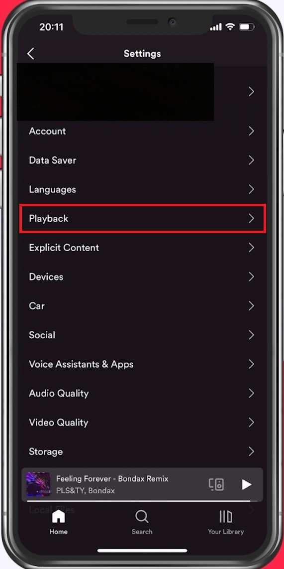 如果您的設備設置不會導致問題,請確保打開音頻太低的應用程序。在本例中,我將選擇 Spotify。點擊右上角的齒輪圖標即可前往 Spotify 設置。從這裡,點擊回放。