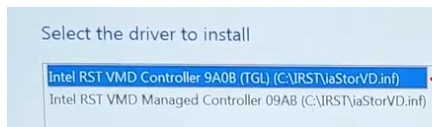 11、選擇驅動安裝窗口,選擇第一個選項,點擊下一步。系統將自動安裝 Intel VMD 驅動程序並顯示可用於啟動 Windows 的驅動器。然後您可以繼續安裝。