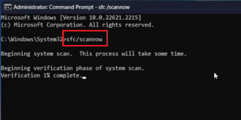 執行 SFC 掃描:在命令提示符窗口中,輸入“sfc /scannow”並按 Enter 鍵。該命令將仔細掃描並自動修復任何檢測到的系統文件不一致或損壞。