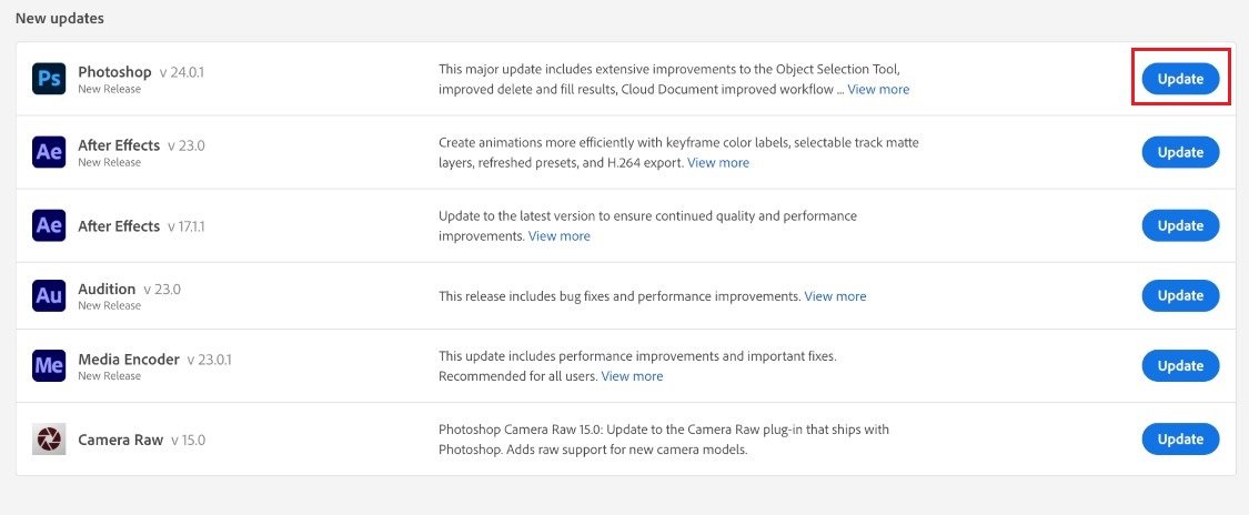 接下來,打開您的 Creative Cloud 應用程序。該應用程序將允許您更新、排除故障和管理您的 Adobe 應用程序。首先,如果您尚未運行最新版本,請更新您的 Photoshop 應用程序。