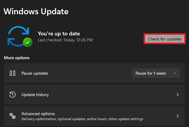 對於 Windows 用戶,請轉到 Windows 設置,找到“Windows 更新”部分並選擇“檢查更新”。下載並安裝最新版本。