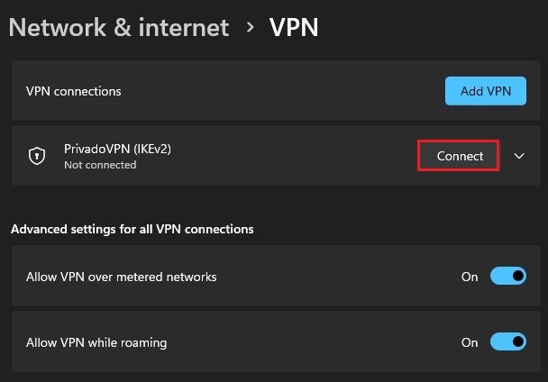 如果服務器似乎可以運行,請打開您的 Windows 設置。在此窗口中,導航至網絡與互聯網部分。選擇 VPN 並確保在嘗試玩 Roblox 時禁用您的 VPN 連接。在很多情況下,VPN 會導致 Roblox 出現與網絡相關的錯誤。
