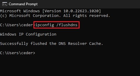 最後,建議刷新無效或過時的 DNS 緩存。通過在開始菜單搜索中搜索 CMD 打開命令提示符。在此窗口中,使用命令ipconfig /flushdns並按回車鍵。這將刷新並重置 DNS 解析器緩存的內容,並修復與 Roblox 服務器的潛在連接問題。