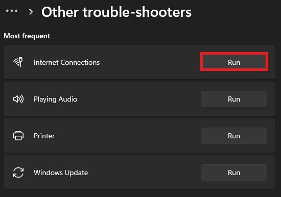 接下來,打開您的系統設置。在Windows上,導航到故障排除部分和下其他故障射擊者,運行互聯網連接故障排除。這將檢測出問題,並可能對您的設置進行更改,以改善您與Internet的連接。