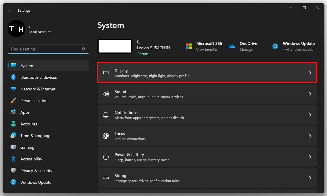完成後,您可以關閉遊戲並打開 Windows 設置。在下面系統,點擊展示。