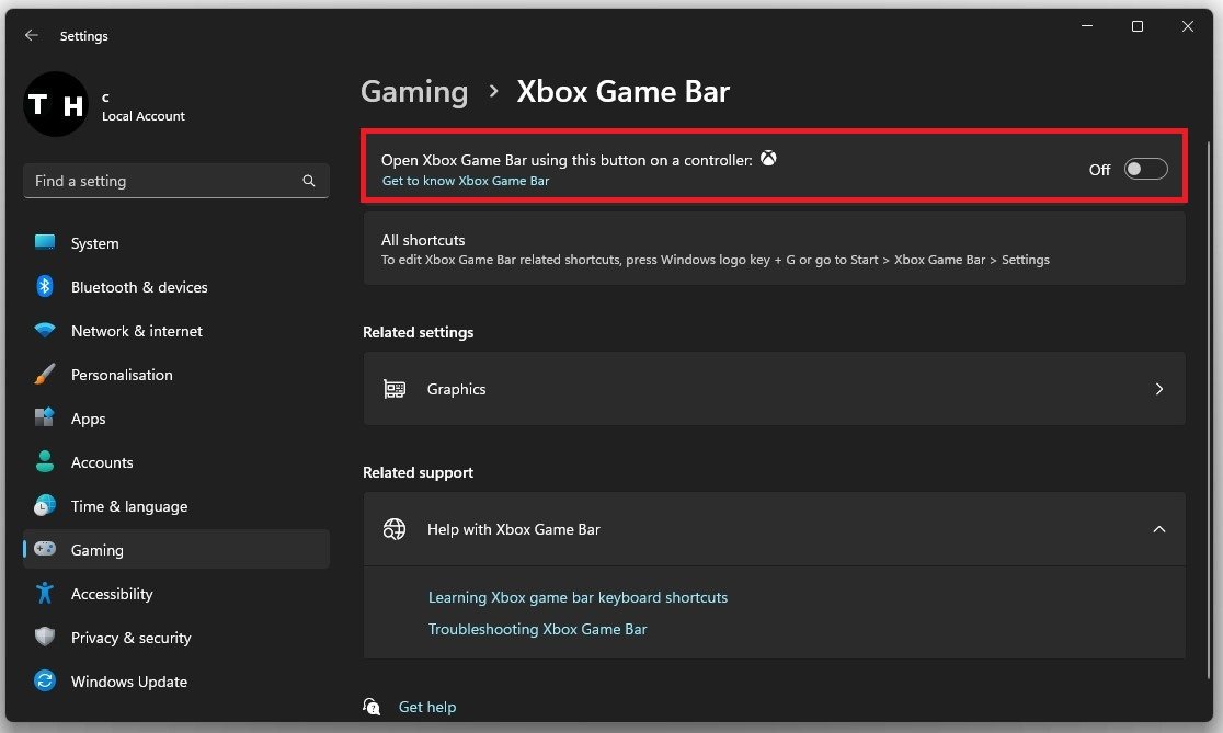 Windows 設置 > 遊戲 > Xbox 遊戲欄