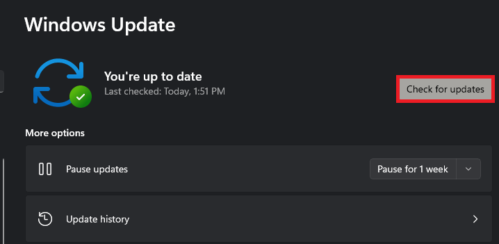 最後,訪問 Windows 更新部分,單擊“檢查更新”,然後在重新啟動計算機之前下載最新的更新。