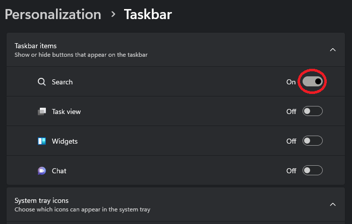 有時,損壞的 Windows 文件或更新可能會導致“開始”菜單搜索功能出現問題。要解決此問題,請導航回 Windows 設置。在“個性化”下,向下滾動以訪問任務欄設置。