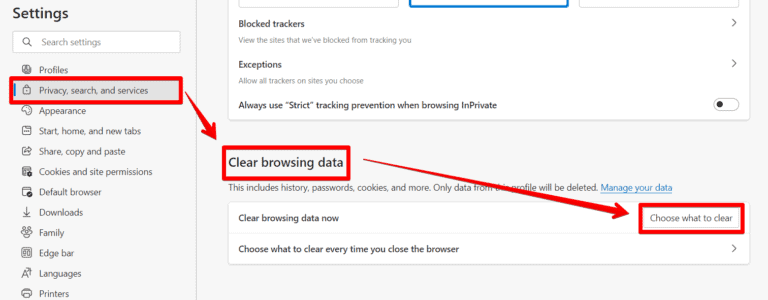 - 打開 ”隱私和安全”並點擊“清除瀏覽數據”。