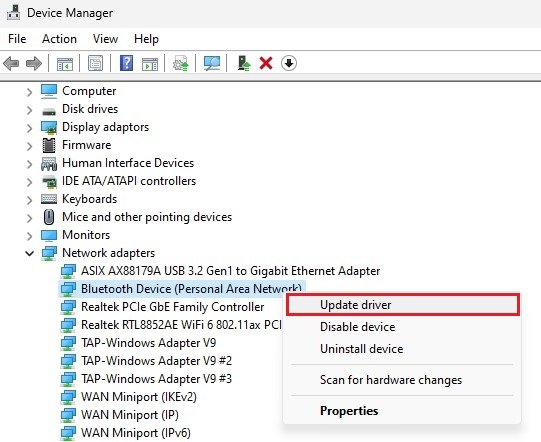 接下來,確保您的網絡適配器驅動程序是最新的。關閉 Windows 設置並打開裝置經理。在此窗口中,展開您的網絡適配器。右鍵單擊您正在使用的並選擇更新驅動程序。點擊自動搜索驅動程序,這將需要幾秒鐘的時間來確保您的網絡適配器驅動程序是最新的。如果您需要幫助確定正在使用的網絡適配器,請對此列表中的每個適配器重複此步驟。