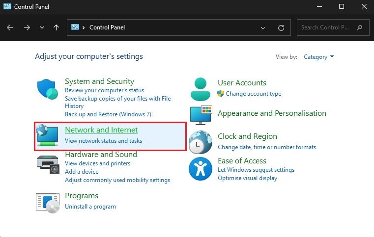 如果網速緩慢問題仍然存在,您應該重置網絡連接。打開你的控制面板。確保查看方式: 類別並點擊網絡和互聯網。