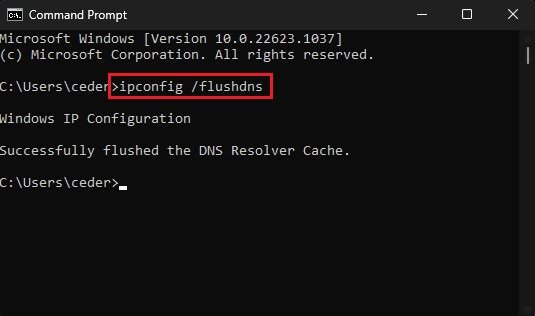 最後,重置您的域名系統或 DNS,以實現更快的服務器連接。在開始菜單中搜索CMD並打開命令提示符。在此窗口中,使用命令ipconfig /刷新DNS。這將刷新並重置 DNS 解析器緩存的內容。如果您的網絡速度通常很慢,您必須聯繫您的 ISP 並詢問升級您的套餐、路由器或兩者的選項。