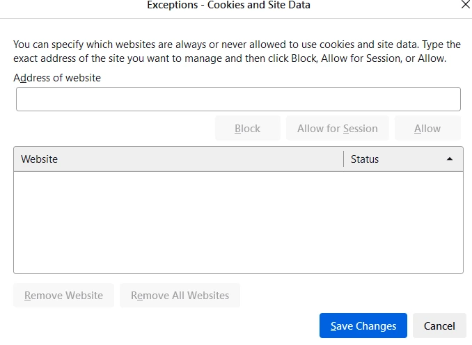 步驟 6:檢查例外列表以確保該站點未被阻止。進行任何必要的更改後,單擊“保存更改”。