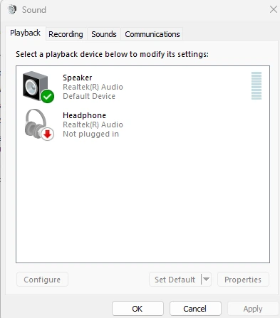 步驟 5:導航至“聲音屬性”窗口中的“播放”選項卡。