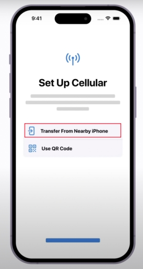 步驟2。選擇一個蜂窩計劃以從您以前的iPhone轉移。或直接點擊從附近的iPhone轉移。