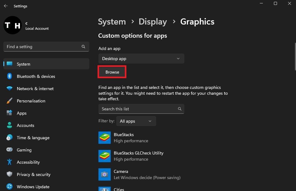 配置運行時允許顯卡支持的應用程序。點擊瀏覽,這將打開您的文件資源管理器。