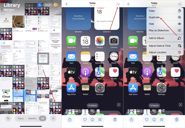 複製照片或視頻有助於刷新其數據並使其再次可供訪問。有時,文件可能由於損壞或 iCloud 同步問題而無法加載。通過複製媒體,您的 iPhone 會將文件視為新文件,從而可能解決任何加載錯誤。