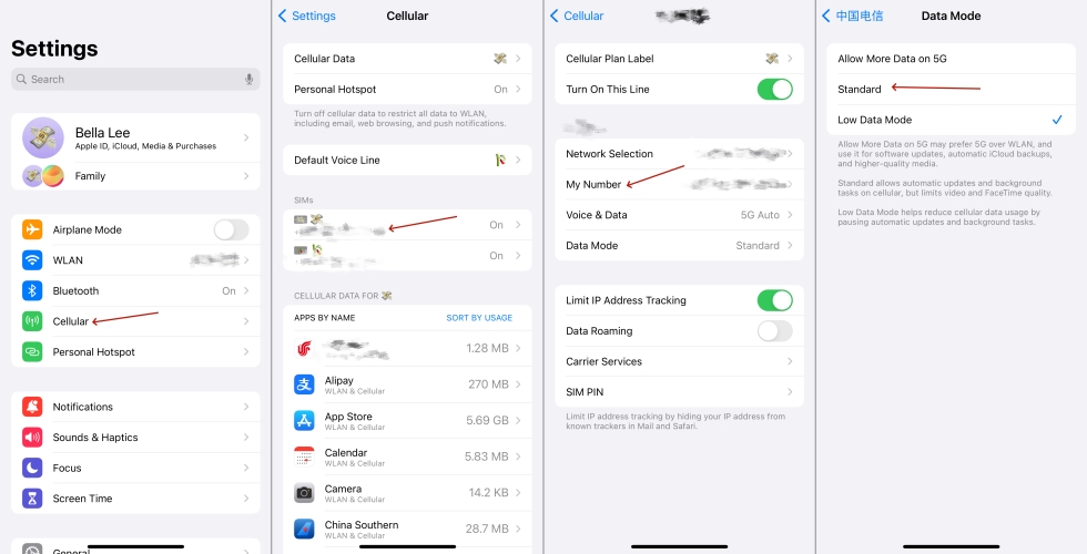 步驟2。進入蜂窩網絡並選擇您的電話號碼。